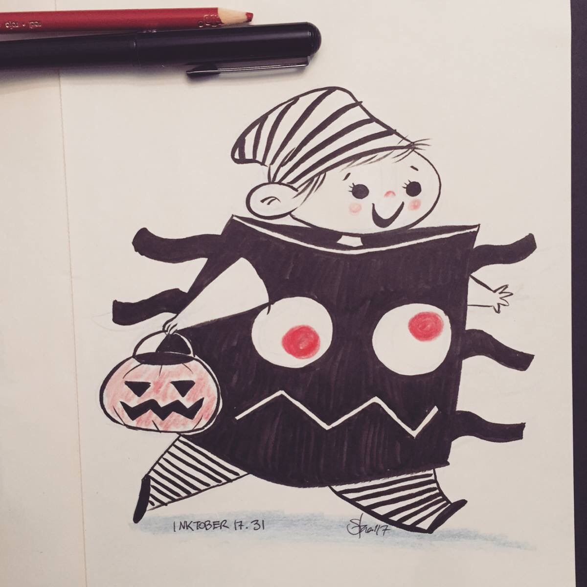 Day 31: Robson dressed up as a big derpy spider for Halloween! For my last drawing of Inktober, I decided to try a time lapse video of my drawing & inking. It was a fun experiment I will try again soon! See below for the final drawing.