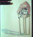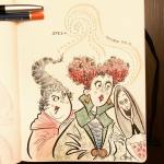 All sketches done on a Moleskine sketchbook, using a mix of pentel brush pen, pigma liners, colerase pencils, pencil crayons and markers. Click to enlarge any of them to see larger.
