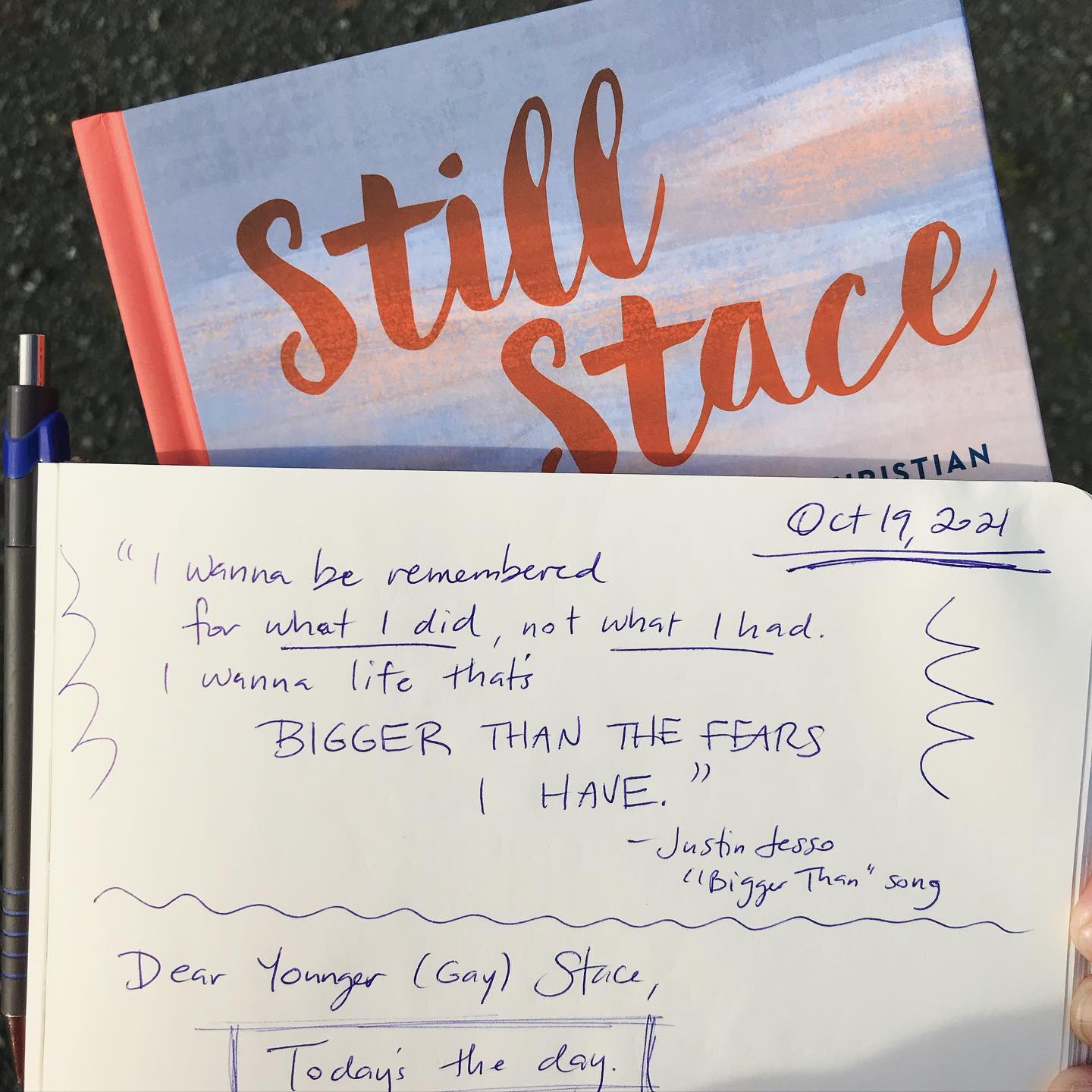 I wrote these lyrics in my #sketchbook from the song “Bigger Than” by Justin Jesso. I listened to this on repeat when I was scared to keep writing.