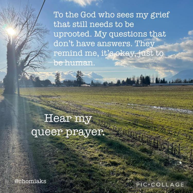 To the God who sees my grief that still needs to be uprooted. My questions that don’t have answers. They remind me, it’s okay, just to be human. Hear my queer prayer.