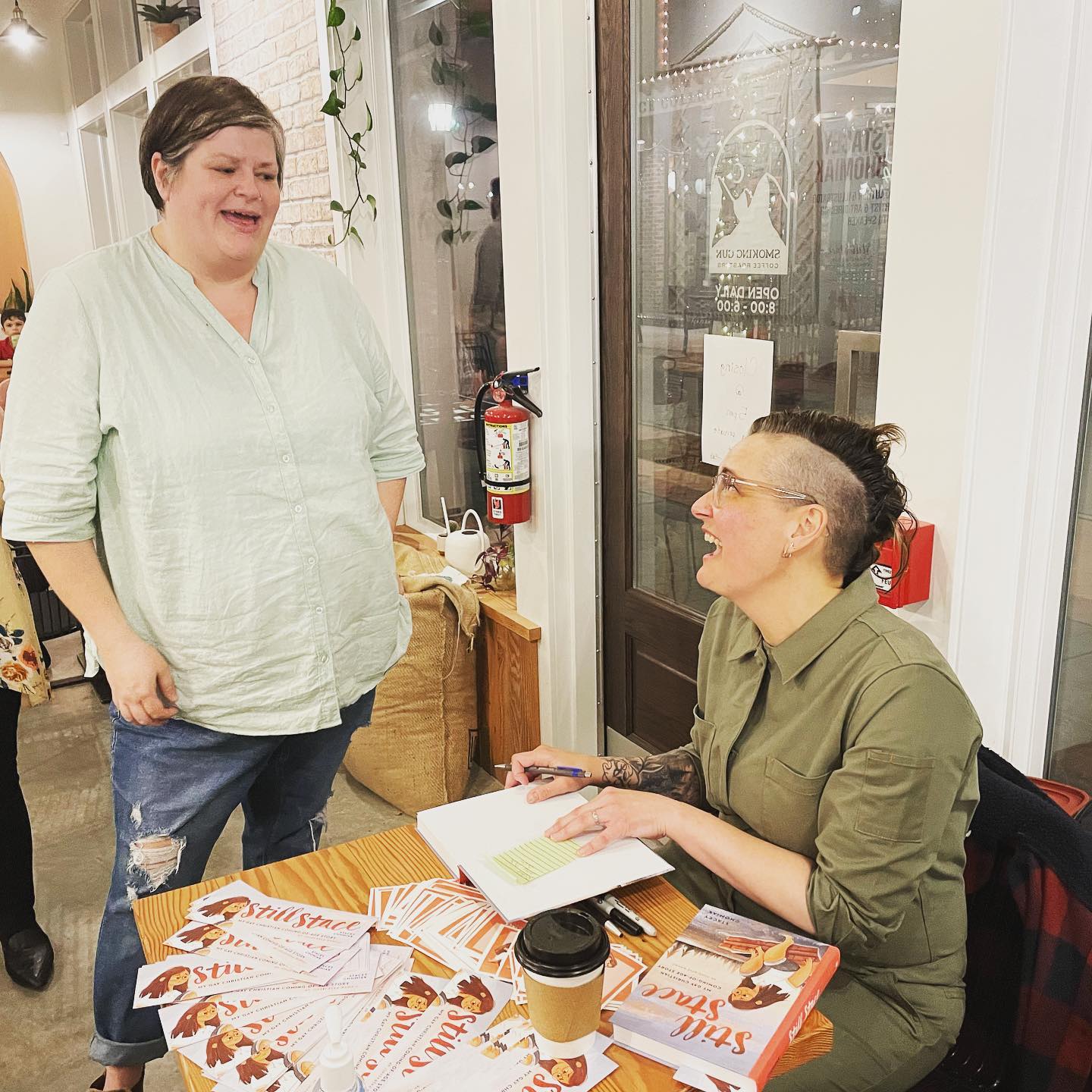 If you came and listened and chatted with me after, while getting your book signed, know that you touched me. (If you emailed me about my book, know that is equally touching and an ongoing pleasure!) So let’s recap, from most recent to oldest launch! (At the bottom of this post I threw a bunch of photos of Still Stace out in the wild! PHEW What a thrilling thing to see.)