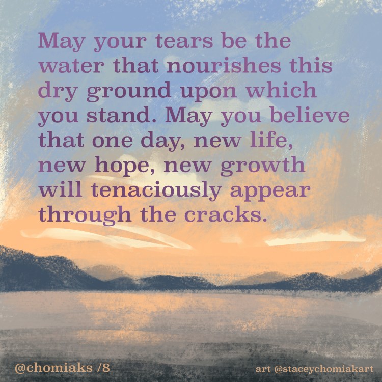 May your tears be the water that nourishes this dry ground upon which you stand. May you believe that one day, new life, new hope, new growth will tenaciously appear through the cracks.