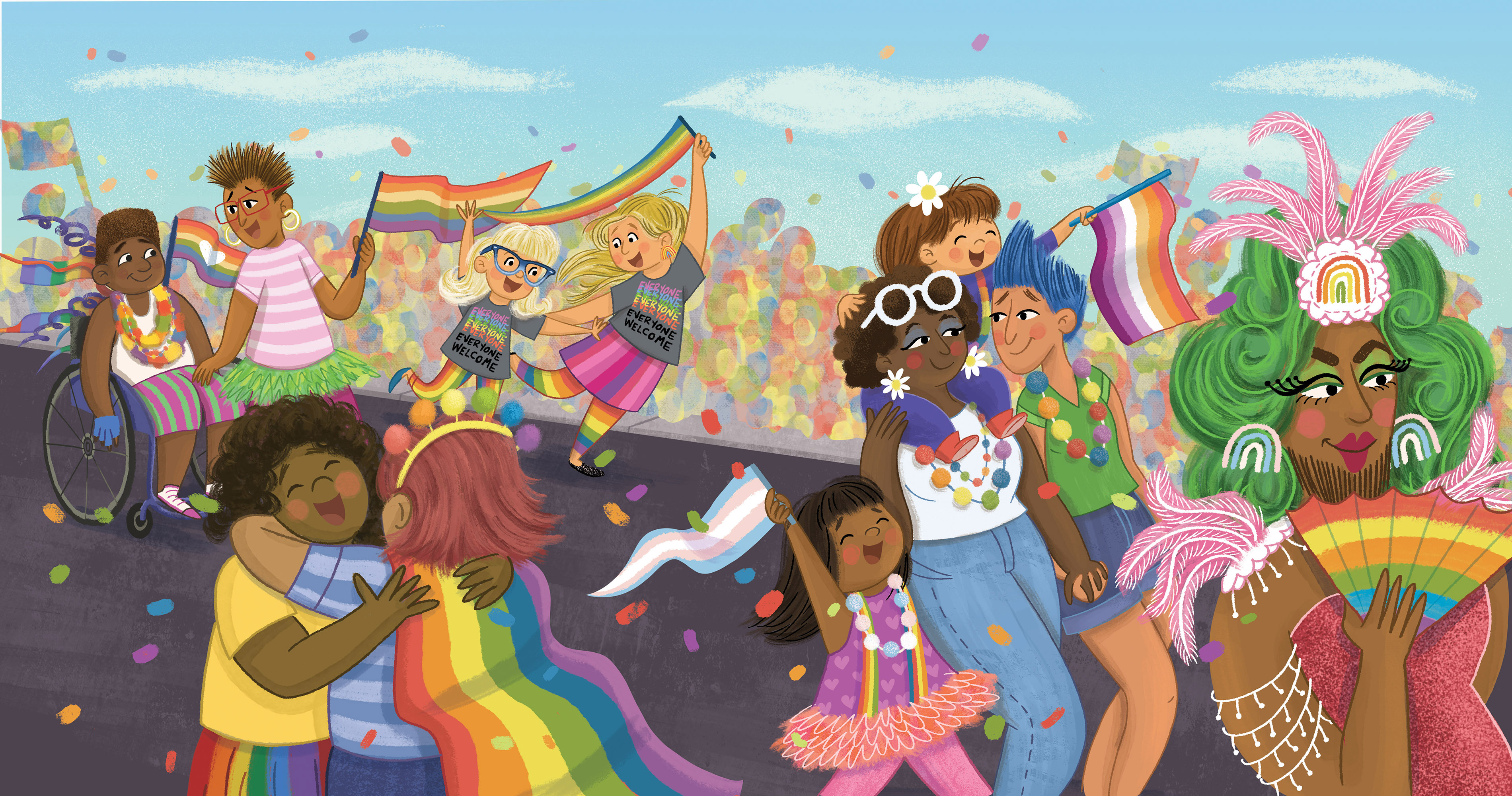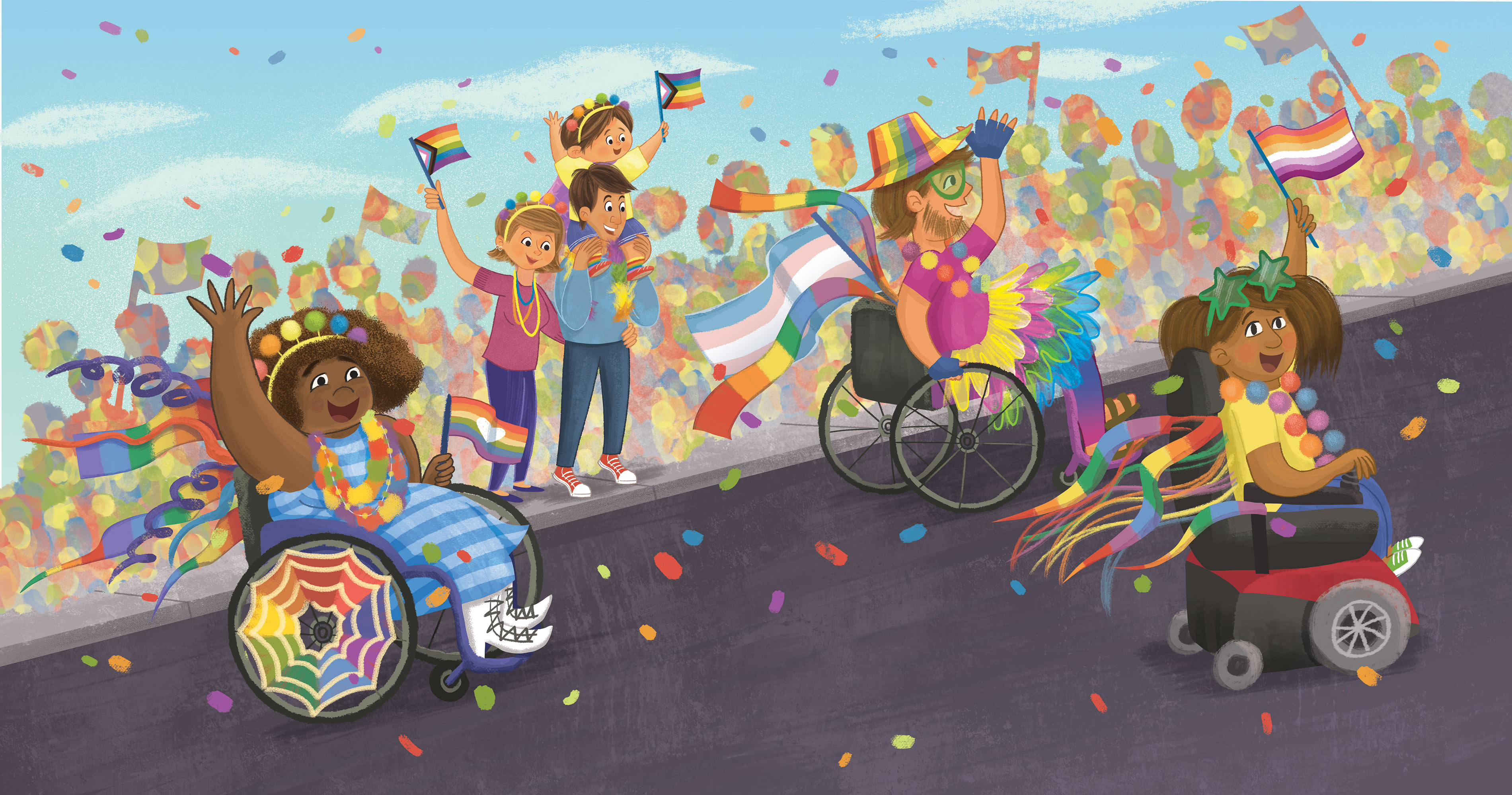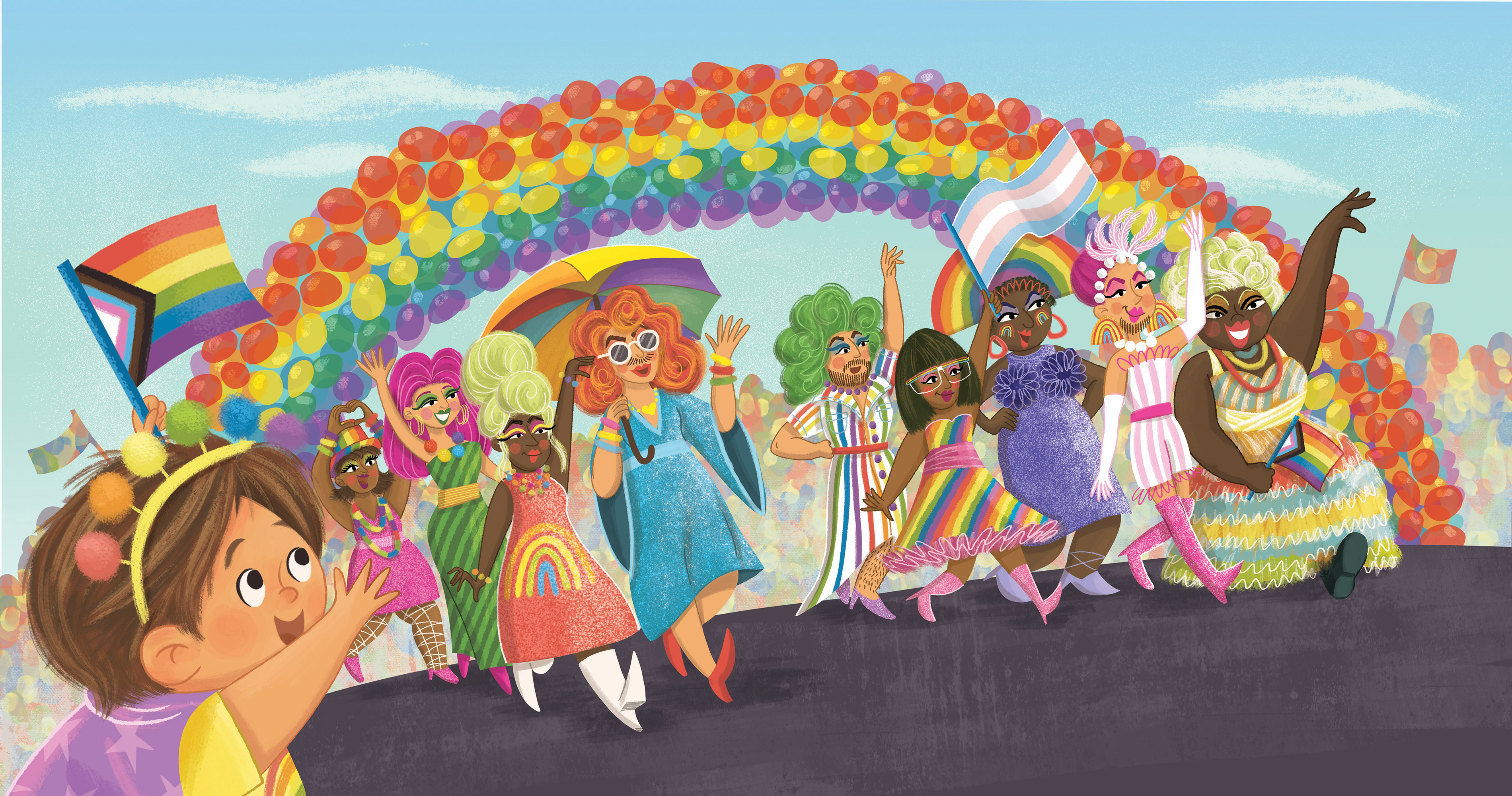 Art from RAINBOW BOY AND THE PRIDE PARADE, written by Taylor Rouanzion (Beaming Books 2025) – digital