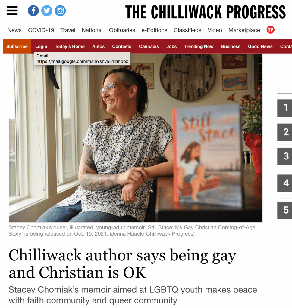 Sunday, June 30, 2021 – Nancy Shadlock, host of The Coming Out Chronicles, invited me on her great podcast! “Stacey Chomiak takes us through her story of growing up closeted in the Evangelical church. Living in a not-so-supportive environment and the struggles of not having someone to talk to, Stacey talks about how exactly that changed and why. Today Stacey is creating books that help others not feel alone in that storyline. Her soon-to-be-released young adult visual novel is going to offer hope and inspiration to many that currently feel alone and like outcasts in their families and churches.”