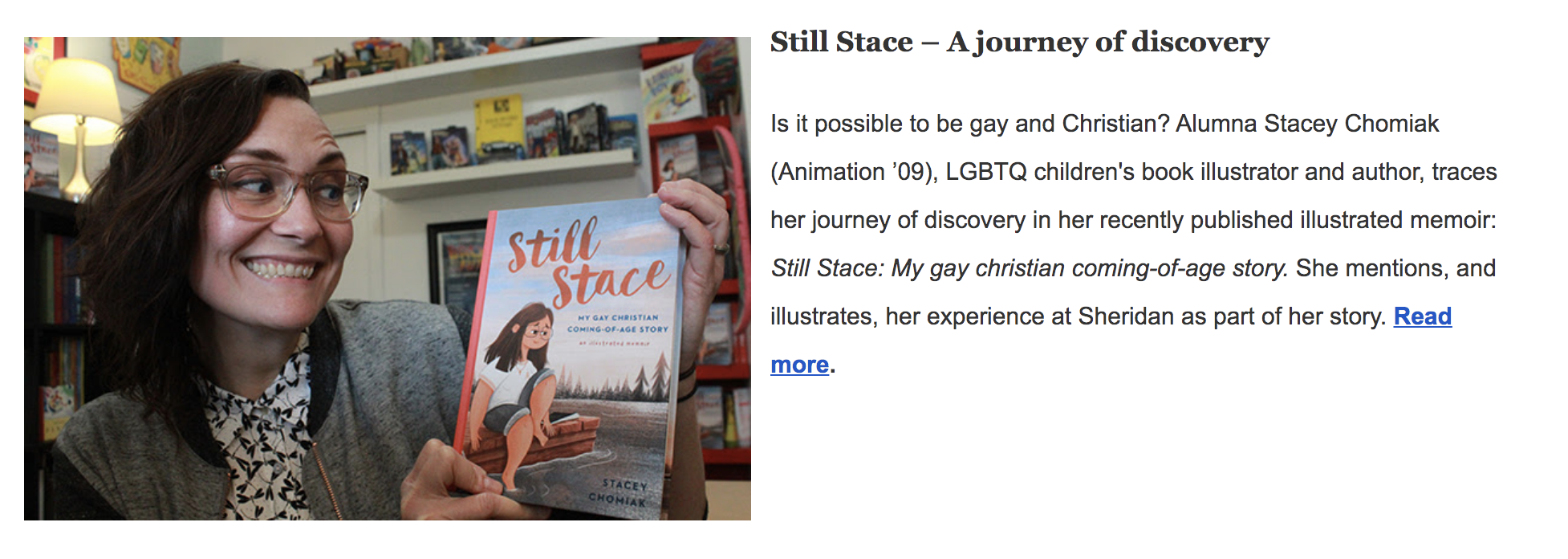 Thursday, June 16, 2022, 6PM EST – I virtually spoke at my alma mater, Sheridan College! We talked about mental health awareness and how it can impact LGBTQ+ youth, and I also shared about my book, Still Stace. Recording is below!